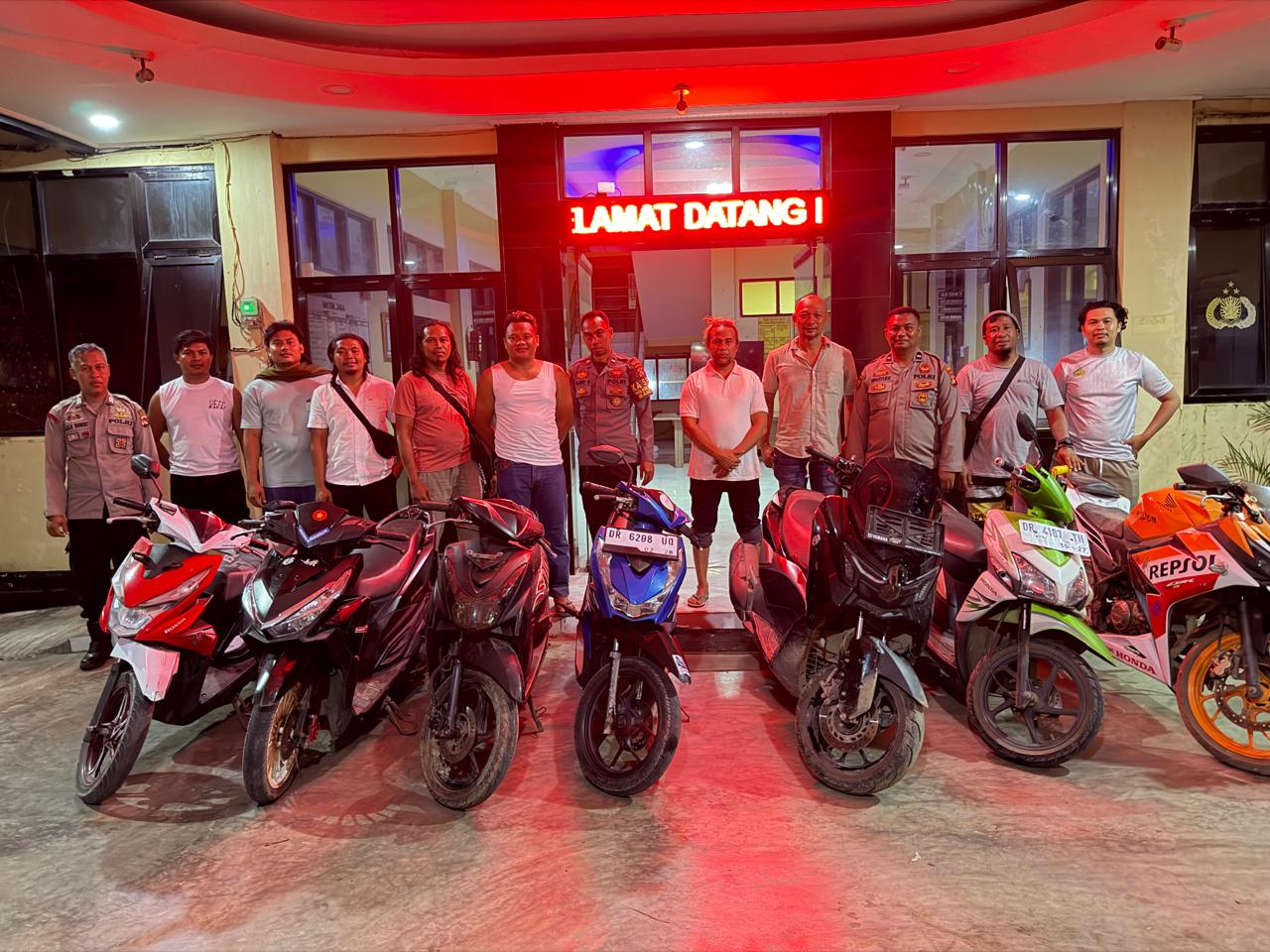 Adapun barang bukti sepeda motor yang berhasil diamankan berjumlah enam unit, dengan rincian satu unit Yamaha N-Max, dua unit Honda Beat, dua unit Honda Vario, dan satu unit Yamaha Mio Soul.